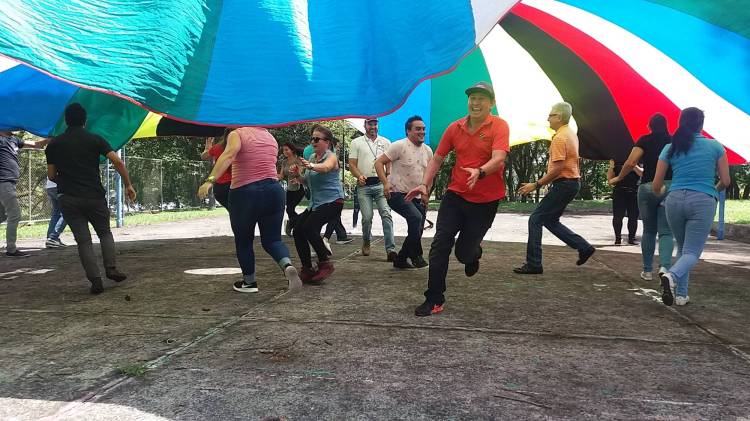 Ofrecemos actividades con paracaídas, juegos tradicionales, talleres de origami, y globoflexia, de risoterapia, arteterapia, de desarrollo escénico y musical, de técnicas de respiración, proyección de voz, ritmo, expresión corporal y gestual, entre otros.
